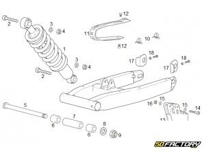 Original and adaptable parts - Moto Microfiche Sherco SM (2006 to 2012) - Exploded plan: Diagram of the shock absorber and swingarm.